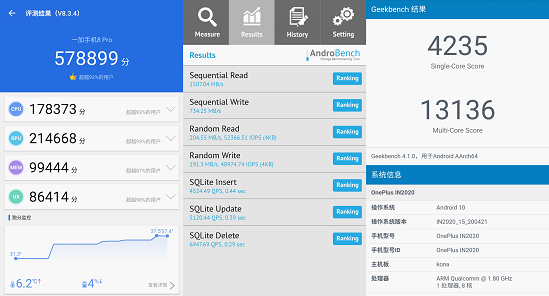 次序载入速率达到 1500MB/s,安兔兔跑分 万,处在制造行业顶级水准,这一版块也是一加手机最平淡无奇的地区,只不过是2020年多了个 5G 和 Wi-Fi 6。