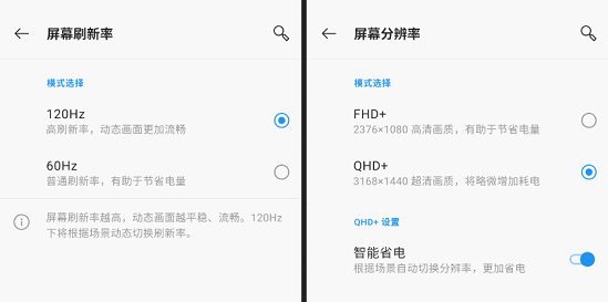 有的人将会对 FHD 、QHD 没法保证清楚辨别,或是担心于高像素和低耗电不能兼顾,因此,一加也出示了在 FHD 、QHD 全自动转换的“智能化节电”方式。评测出来 4510mAh 就可以推动 OnePlus 8 Pro 长达 10 钟头的持续使用时间。
