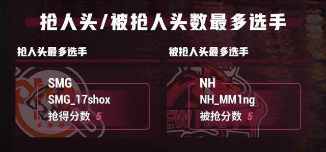 被抢人头数最多的参赛选手:NH_MM1ng,被抢成绩 5