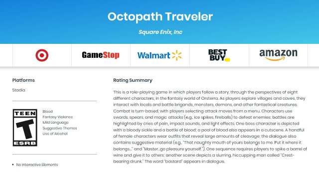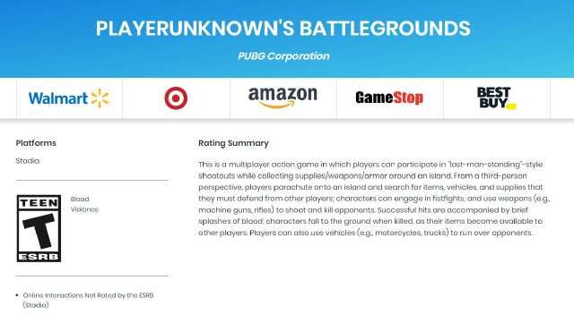 今天(4月28日),英国定级网址ESRB宣布发布了《八方旅人》和《绝地求生》Stadia版的定级,均为T级(Teen)13 ,现阶段这2款手机游戏并未宣布发布将登录Stadia服务平台。
